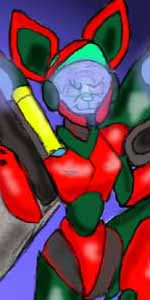 | Surshot was origilaly part of a federal special wepons programe , to be living components for a new kind of super power armor. When special operations was forcivly disbanded she was reliste in to scociety "with her gear", Surshot was recruted by the crew of the Hysterix as muscle, ther she met Lora and Erwin. During a layover on the relay station "Arkland" she got an urgant call from her frends asking for emidiate firesuport, ariving just in the nic of time ,preventing her frends from being slaughterd. Unable to make ther getaway on the Hysterix they made ther escape on the Gull insted , incapabel of rejoining her crewmates Surshot remande with her frends on the Gull , she has been with them ever sinse. Surshot is very shy and widrawn but in her armor she can be extremly agressive, the nural feedback from the controle systems can trow her in a kin of battlr rage wher she cant stop fighting untill she runs out of targets ,in this state she has a hard time telling frend from foe, surshot fears tha part of her. Surshot suffers from a pour self image ,she thinks herself ugly and uninteresting , that the others only value her as a wepon and nothing elst. resently she has gotten in to a relationship with Rigner and for the first time in her life she is realy hapy,the rest of the crew after getting to know her better have been giving her special attenction and try to minimise the amout of time she has to use her armor. Surshot is superbly traind in power armor combat and with her sute she is a forse to be recond with, outside of her armor she is reletively effective and is trand in basic combat but is not as agressive as the other fighters. She is a little lacking in non militery skills but is making an effort to learn new things. |
