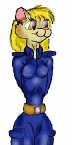 On the relay station Arkland she was member of the starports teck crew, hired to do some repair work on the Gull's suport systems when the ship sudenly took off with her still stuck begind an accest pannel. Finaly getting herself unstuck she crald out much to the astonisment of the crew. Not really having anyplace to go and glad she whas leaving the sataction "the only home she has ever known" Glich whas happy to join the crew. She really likes it on the Gull ,a warm bed, good food, and frends that actualy give a damn bout her, a lot better than on staction Arkland wher evryone just stompt on her. Glich is instrumental in keeping the gull running ,her instinks with electronics ans her ability to squeeze in tight spots are defenetly a big help. Spunky and a littel bit jitery she defenetly livent things up on ship. |