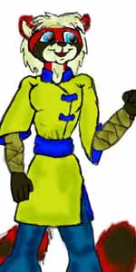 | Kyo was purchest as a cook's asistent for an upscale resterant on Duform. The sharming fur was later adopted by the Shen famely {the restotant's owners}. Because of resent anty fur sentement his "famely" that he might be safer elstwear and got him a position as ship's cook on a free trader. Unfortunatly working on the Gull is anything but safe, interesting but not safe. Kyo is charming |
